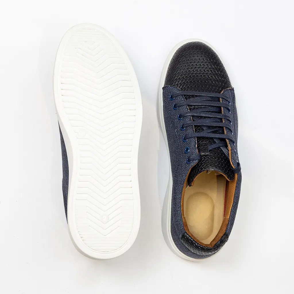- Upper Material: Natural leather and laminated canvas fabric